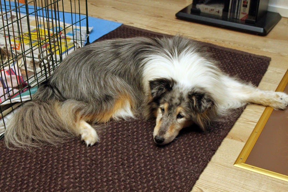 Perjantaina töiden jälkeen lähdin Eijan seuraksi automatkalle Lahteen, jossa Univetissa eläinlääkäri Pärnänen terveystarkisti koirat ja tutki silmät. Shelteillä tutkitaan silmät jo pentuna, sillä rodulla on yleistä erilaiset silmävaivat. Pennut eivät ole autoilleet, joten jännättiin, kuinka matka sujuu.